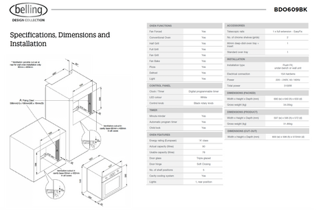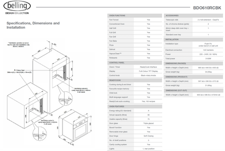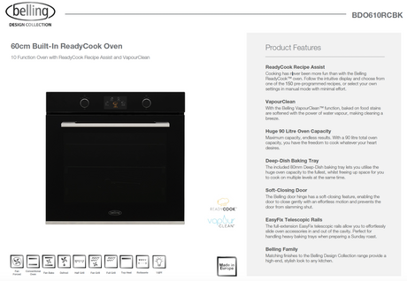 $1,049.00$1,899.00Unit price /UnavailableBelling BDO610RCBK 60cm Built-in ReadyCook Black Glass Oven