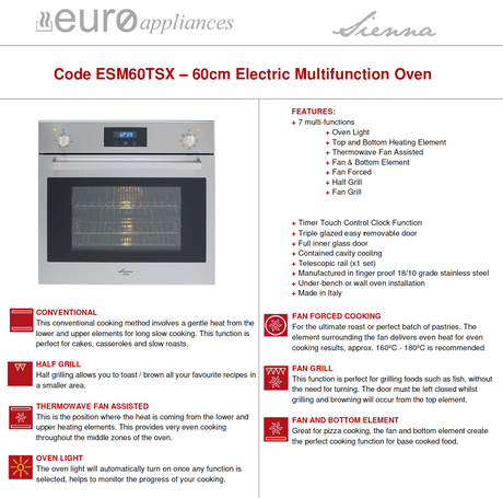 $879.00Unit price /UnavailableEuro Appliances ESM60TSX Premium Range Italian Multifunction Electric Oven