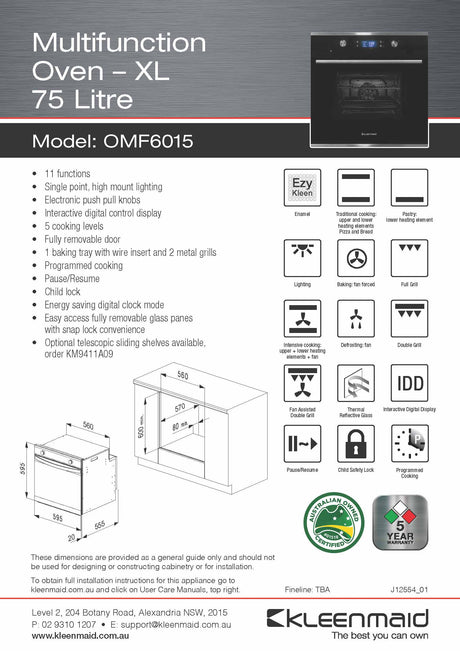 $899.00Unit price /UnavailableKleenmaid OMF6015 60cm Multifunction Oven