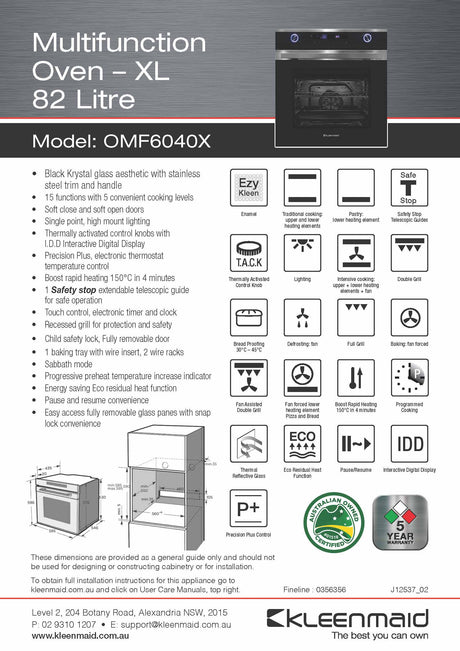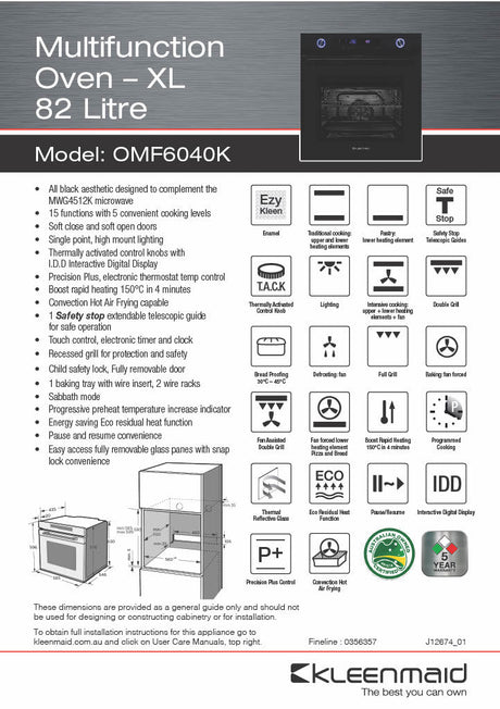$1,333.00$2,199.00Unit price /UnavailableKleenmaid OMF6040K 60cm Multifunction Oven