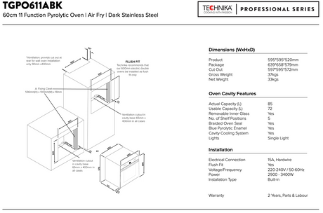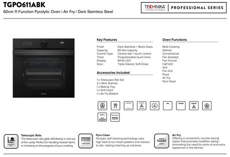 $888.00$999.00Unit price /UnavailableTechnika TGPO611ABK Series 8 60cm Pyrolytic Self Cleaning oven with Airfry - Clearance Discount