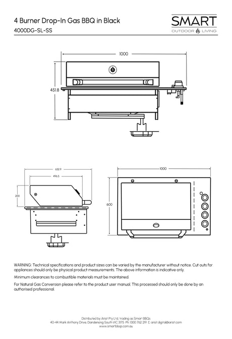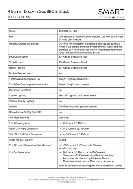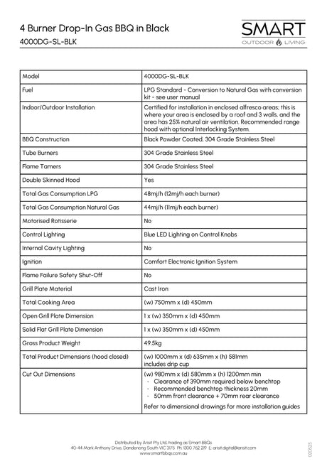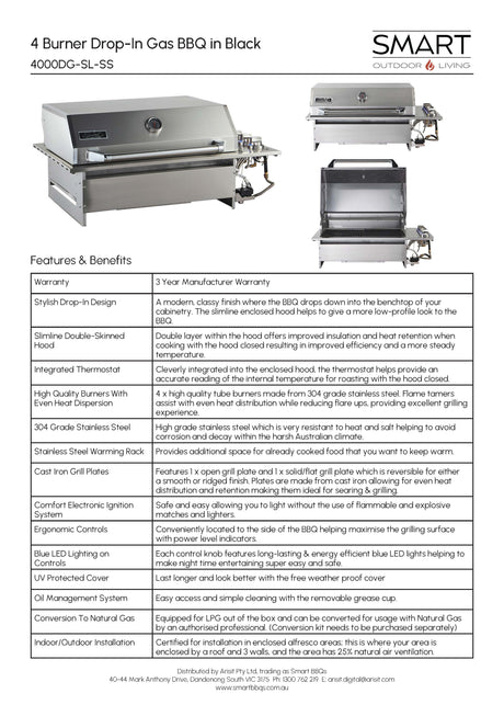 $2,199.00$2,999.00Unit price /UnavailableSmart 4000DG SL-BLK Four Burner Drop-In BBQ in Black