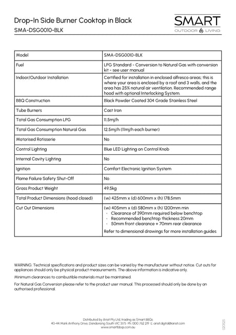 $449.00$499.00Unit price /UnavailableSmart SMA-DSG0010BLK Drop-In Side Burner Gas BBQ Cooktop in Black