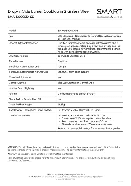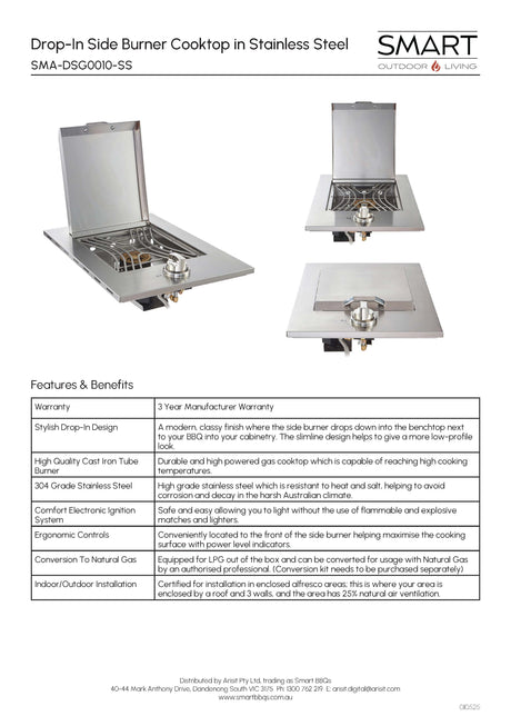 $2,199.00$3,099.00Unit price /UnavailableSmart SMA-DSG0010-SS Drop-In Side Burner Gas BBQ Cooktop in Stainless Steel