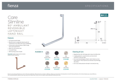 $318.75$375.00Unit price /UnavailableFienza FC4545GM 90° Care Slimline Ambulant Care Hand Grab Rail, Gun Metal