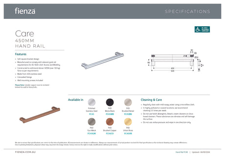 $176.00Unit price /UnavailableFienza FC45CO Care Slimline Hand Grab Rail, 450mm, Brushed Copper