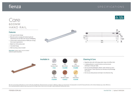 $255.00$300.00Unit price /UnavailableFienza FC60GM Care Slimline Hand Grab Rail, 600mm, Gun Metal