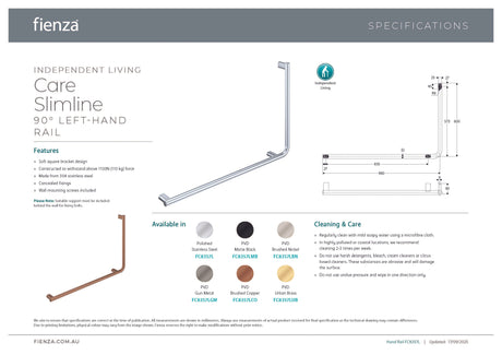$357.00$420.00Unit price /UnavailableFienza FC8357LCO 90° Care Slimline Left-Hand Grab Rail, Brushed Copper