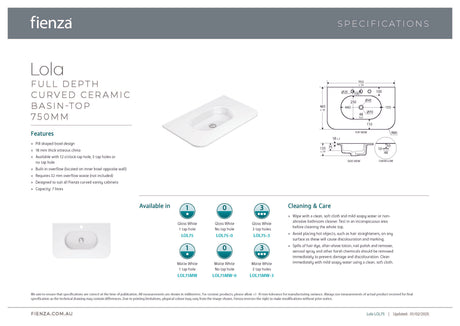 $3,050.00$3,589.00Unit price /UnavailableFienza LOL75CM Lola 750 Matte Mila Curved Satin White Wall-Hung Vanity, One Tap Hole