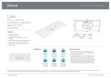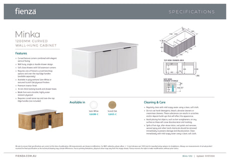 $1,282.00$1,509.00Unit price /UnavailableFienza Lola LOL120CM 1200 Matte Minka Curved Satin White Wall-Hung Vanity, One Tap Hole