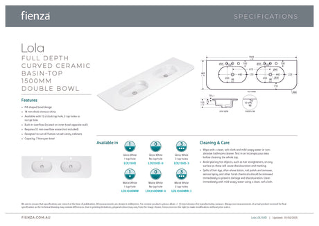 $1,894.00$2,229.00Unit price /UnavailableFienza Lola LOL150CM 1500 Matte Mila Curved Satin White Wall-Hung Vanity, One Tap Hole