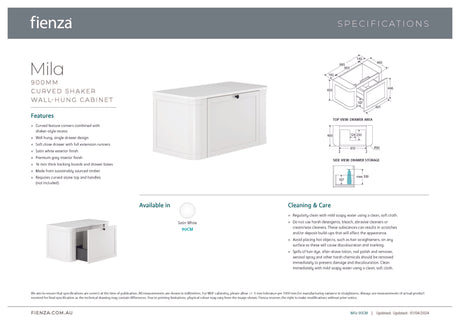 $1,121.00$1,319.00Unit price /UnavailableFienza LOL90CM Lola 900 Matte Mila Curved Satin White Wall-Hung Vanity, One Tap Hole