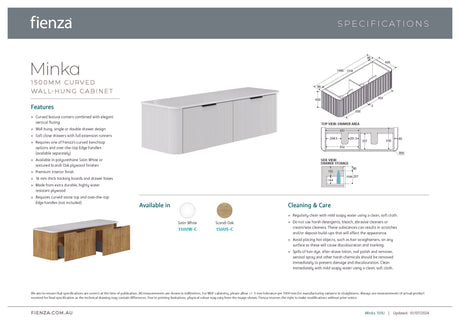 $1,894.00$2,229.00Unit price /UnavailableFienza LOL150USD Lola 1500 Matte Minka Curved Scandi Oak Wall-Hung Vanity, One Tap Hole
