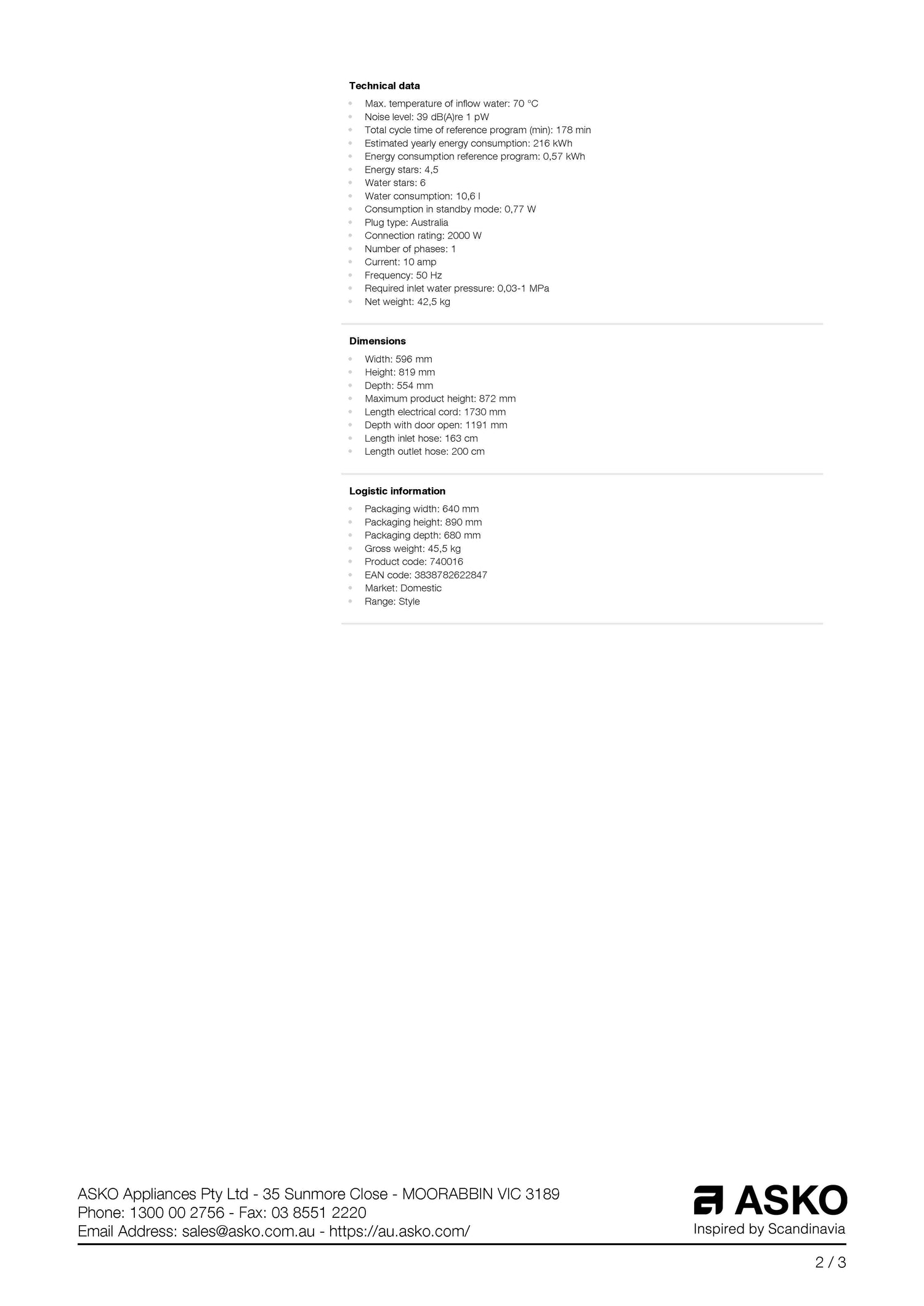 • Auto Wash - ASKO’s Auto Wash with the SensiClean™ sensor ensures the right temperature, washing cycle and drying regardless of what you have put in the machine. Every time.