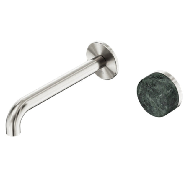 Nero Serenity Progressive Wall Basin Mixer 220mm Spout w/ Verde Alpi Handle Brushed Nickel 24E074BN