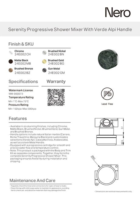 $336.00$448.80Unit price /UnavailableNero Serenity Progressive Shower Mixer w/ Verde Alpi Handle Chrome 24E002CH