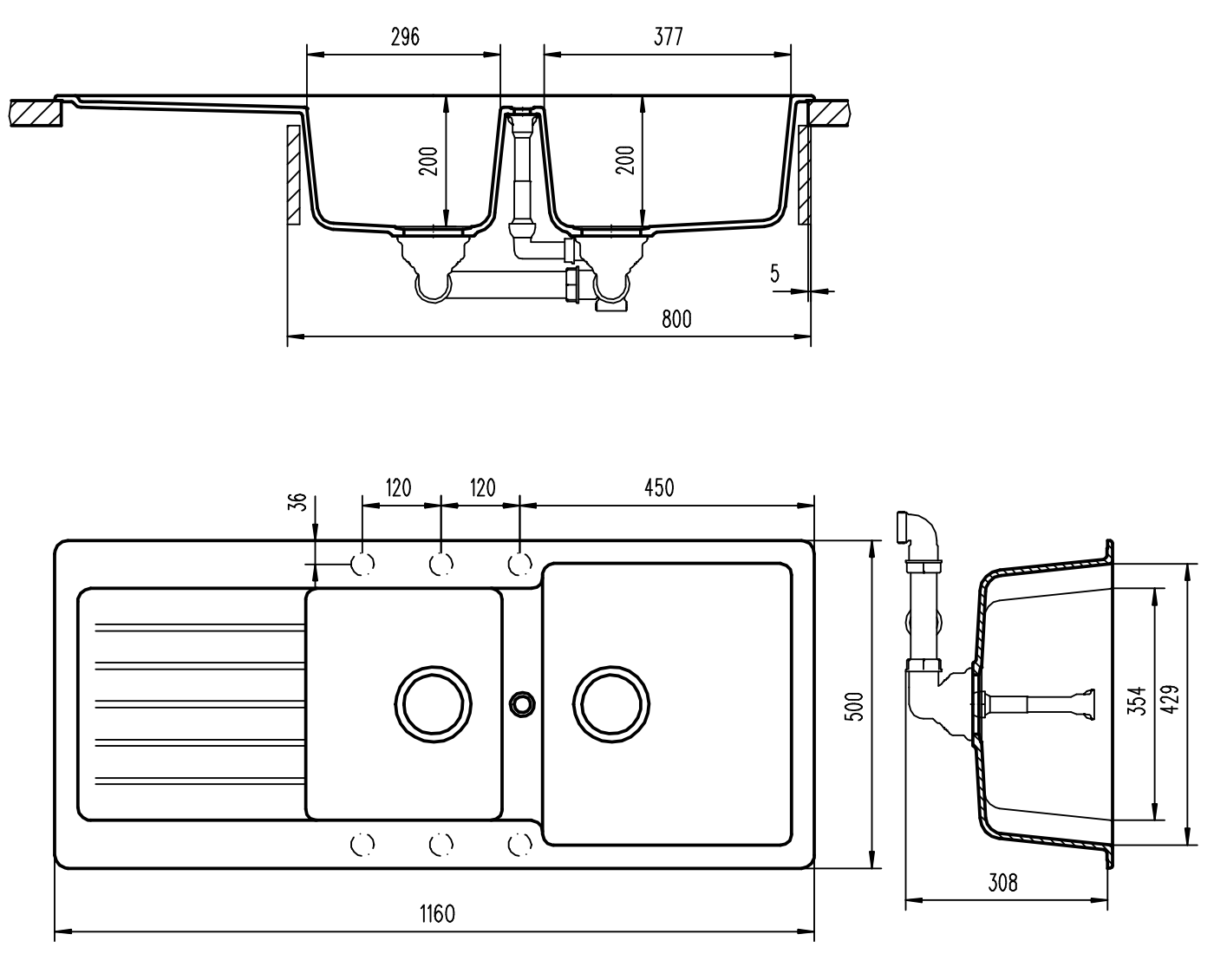 L: 1160mm x W: 500mm x D: 200mm