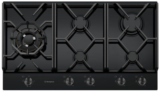 Westinghouse WHG959BD 90cm 5 Burner Black Glass Gas Cooktop - New in Box Clearance and Seconds Discount