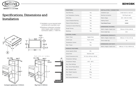 $800.00$2,056.00Unit price /UnavailableBelling BDWDBK 14cm Built-in Warming Drawer, Black Glass