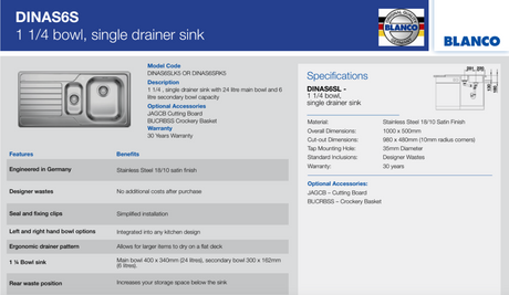 $1,129.00$1,465.00Unit price /UnavailableBlanco DINAS6SLK5 1 and 1/4 Bowl Kitchen Sink