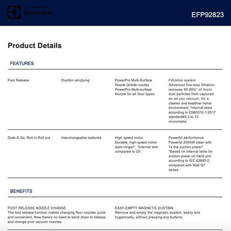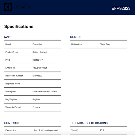 $699.00$1,599.00Unit price /UnavailableElectrolux EFP92823 UltimateHome 900 Stick Vacuum 200AW, Grey