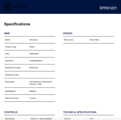 $488.00$1,099.00Unit price /UnavailableElectrolux EFR31221 UltimateHome 300 Robotic Vacuum + Mop, Blue - Brand New