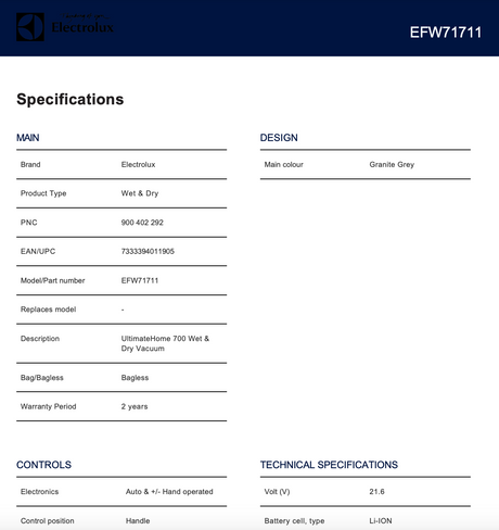 $288.00$599.00Unit price /UnavailableElectrolux EFW71711 UltimateHome 700 Wet & Dry Cordless Vacuum, Grey