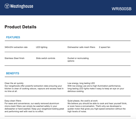 $899.00$1,899.00Unit price /UnavailableWestinghouse WRI500SB 50cm Under Cupboard Rangehood - New in Box