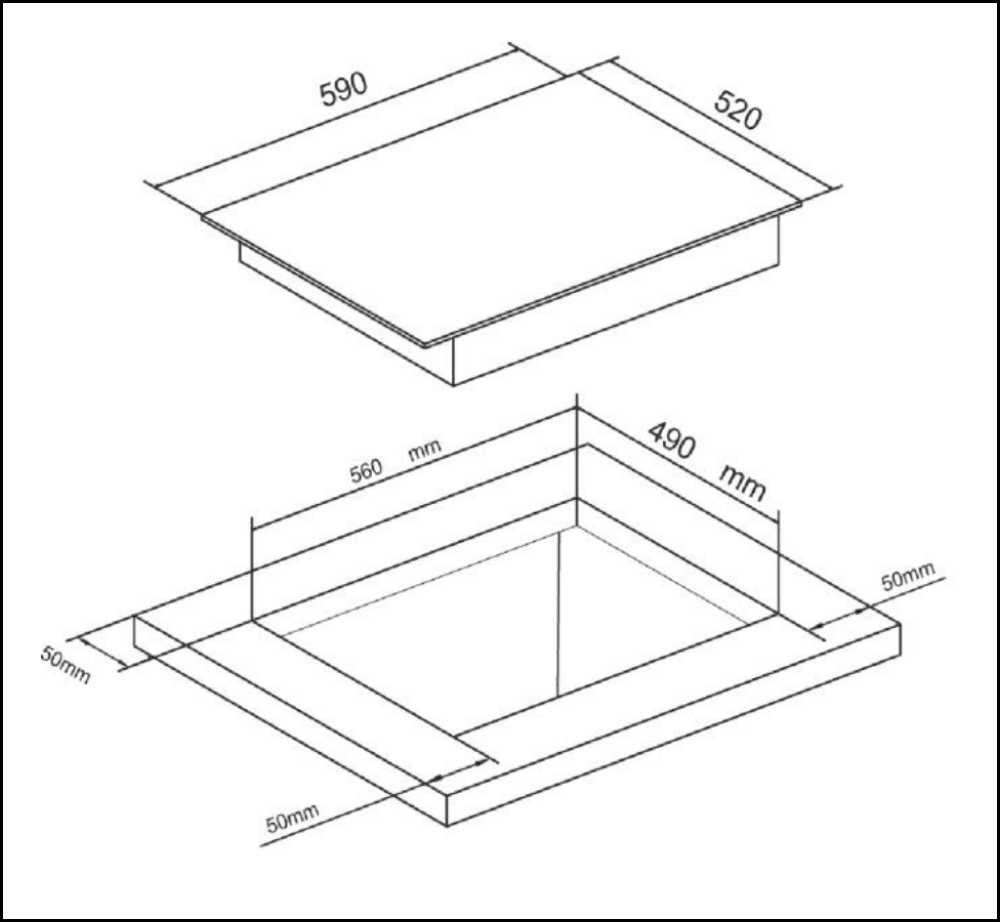 Cutout: Width: 560mm x Depth: 490mm