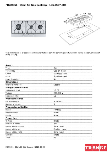 $2,299.00$3,199.00Unit price /UnavailableFranke FIG903S1N 3 Burner Natural Gas Stainless Steel Cooktop