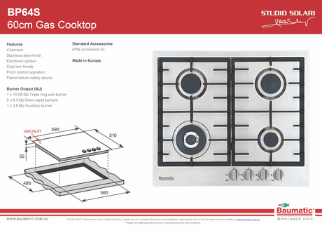 $399.00$799.00Unit price /UnavailableBaumatic BP64S 60cm Italian Made Stainless Steel Cooktop