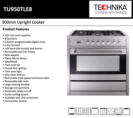 $1,599.00$2,899.00Unit price /UnavailableTechnika TU950TLE8 90cm Dual Fuel Freestanding Stove - Seconds Discount