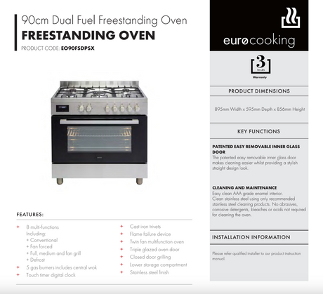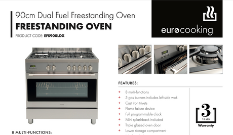 $999.00$1,299.00Unit price /UnavailableEuro Appliances EO90FSDPSX 90cm Freestanding Dual Fuel Stainless Steel Stove - Special Order