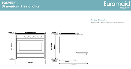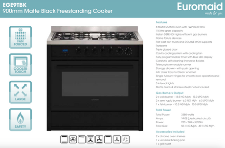 $1,888.00$2,999.00Unit price /UnavailableEuromaid EGE9TBK Matte Black 90cm Dual Fuel Freestanding Stove