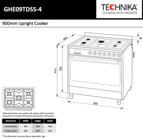 $3,133.00$4,399.00Unit price /UnavailableTechnika GHE09TDSS-4 90cm Dual Fuel Freestanding Cooker - Seconds Discount