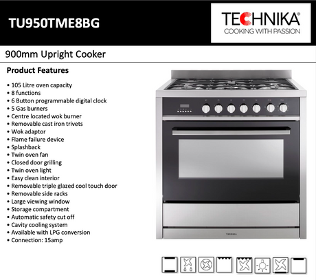$2,300.00$2,899.00Unit price /UnavailableTechnika 90cm TEG95TBK Dual Fuel Black Finish Upright Cooker