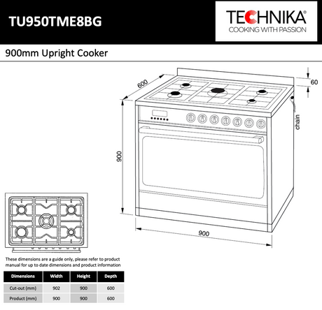 Technika 90cm TEG95TBK Dual Fuel Black Finish Upright Cooker - Seconds Discount
