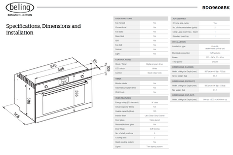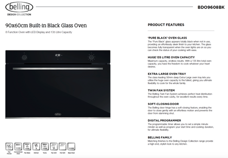 $1,088.00$1,499.00Unit price /UnavailableBelling BDO9608BK 90cm Built-in 8 Function Black Glass Oven - Made in Italy