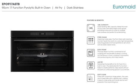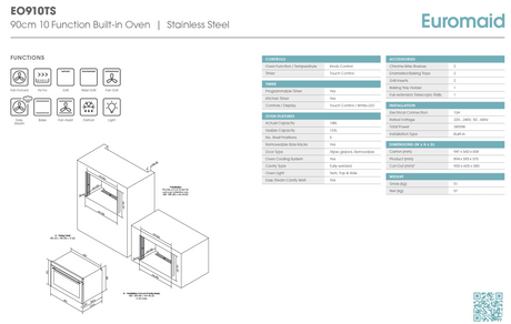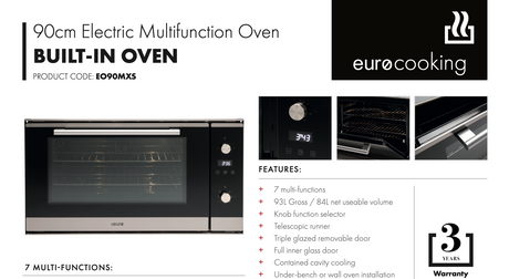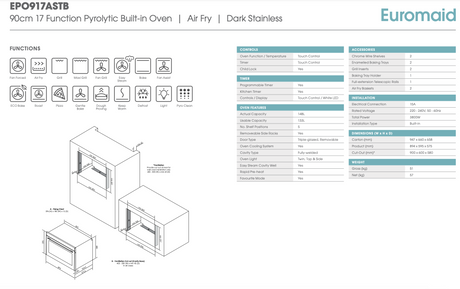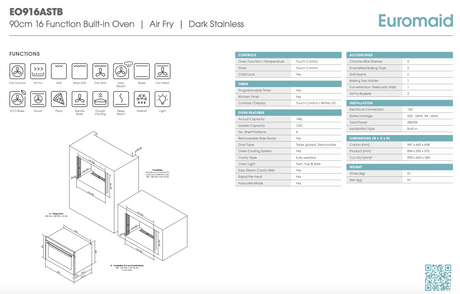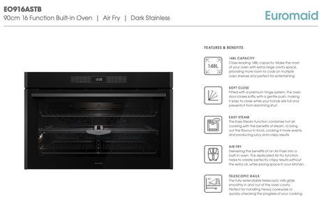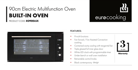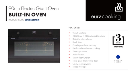 $999.00$1,999.00Unit price /UnavailableEuromaid EO910TS 90cm 10 Function Built-in Oven, Black Glass/Steel - Ex Display Discount