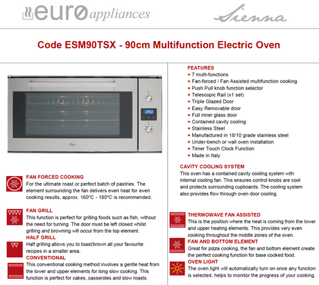 $1,344.00$1,999.00Unit price /UnavailableEuro Appliances Premium Series EV900MSX Italian Made 90cm Electric Multi-Function Oven