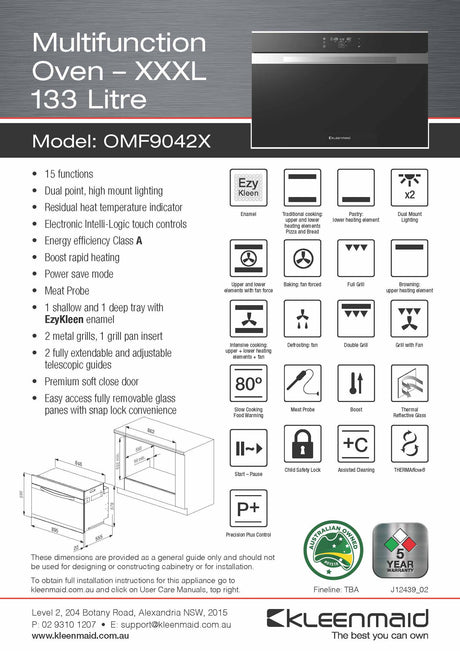 $2,499.00Unit price /Unavailable Kleenmaid OMF9411 90cm Multifunction Oven