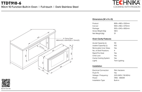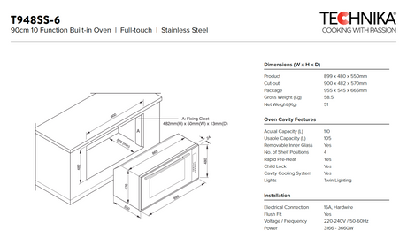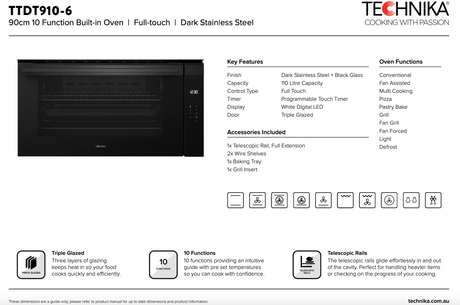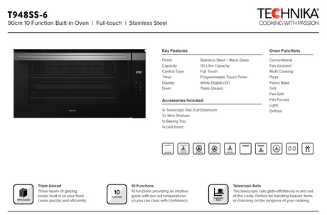 $1,999.00Unit price /Unavailable Technika T948SS-6 90cm Electric Built in Oven