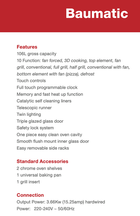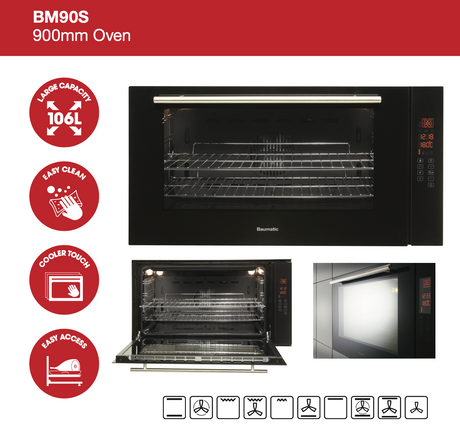 $1,099.00$3,629.00Unit price /UnavailableBaumatic BM90S 90cm 10 Multifunction Black Glass Function Touch Control Oven