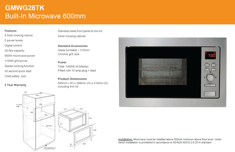 $444.00$679.00Unit price /UnavailableEuro Appliances ES28MTSX Inbuilt Microwave Oven + Grill with Trim Kit