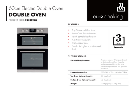 $1,199.00$1,499.00Unit price /UnavailableEuro Appliances EO8060DX Electric Multifunction Duo Wall Oven