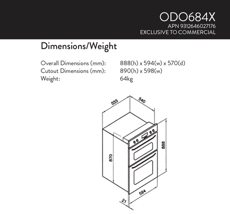 $899.00$2,499.00Unit price /UnavailableOmega ODO684X 60cm 8 Function Electric Fan Forced Double Oven