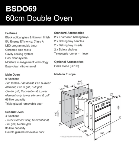 Baumatic BSDO69 Studio Solari Black Glass Double Oven – Carton Damage Discount