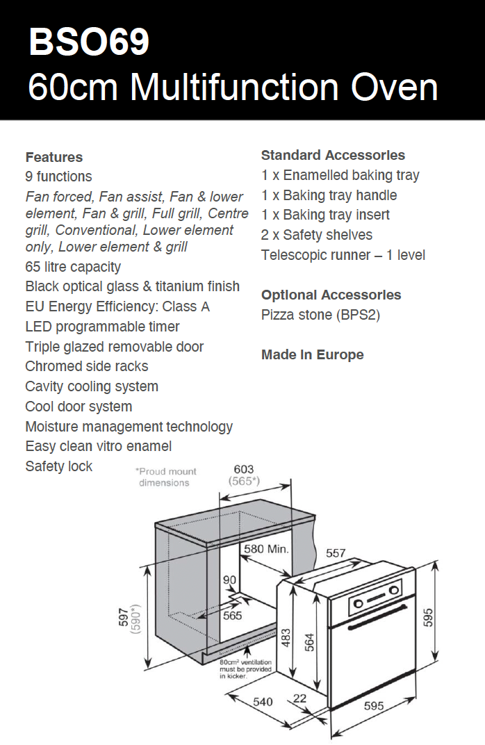 Baumatic BSO69 Studio Solari 60cm Black Glass Electric Oven