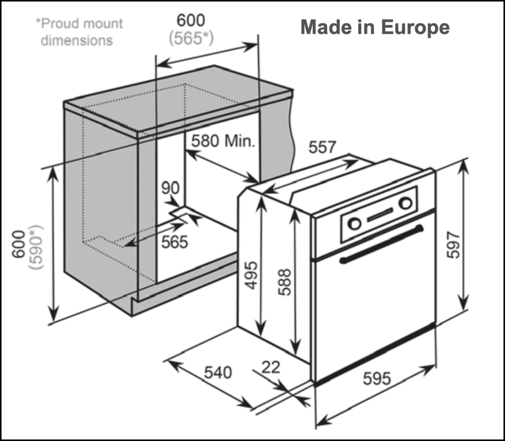 Height: 597mm x Width: 595mm x Depth: 562mm