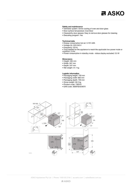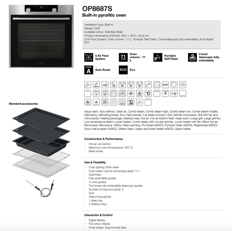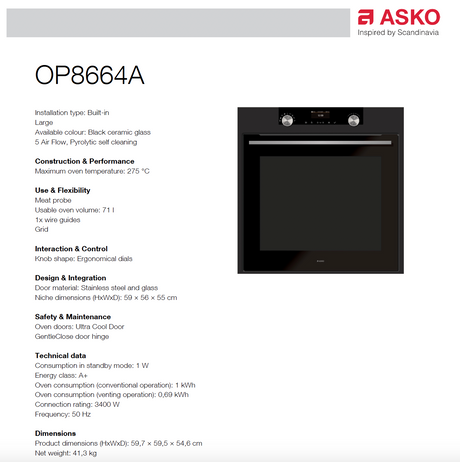 $2,699.00$4,599.00Unit price /UnavailableAsko Elements OP8678G 60cm Pyrolytic Multi Functional Oven - ASKO Seconds Discount
